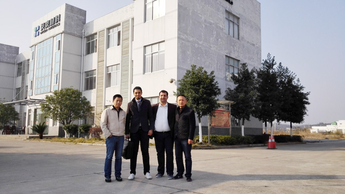 2014年12月8日14時(shí)許,埃及客戶在國(guó)際貿(mào)易部經(jīng)理易宇飛的陪同下來(lái)我司參觀。公司總經(jīng)理劉行軍、技術(shù)部經(jīng)理黃勁等熱情接待了埃及客戶。
