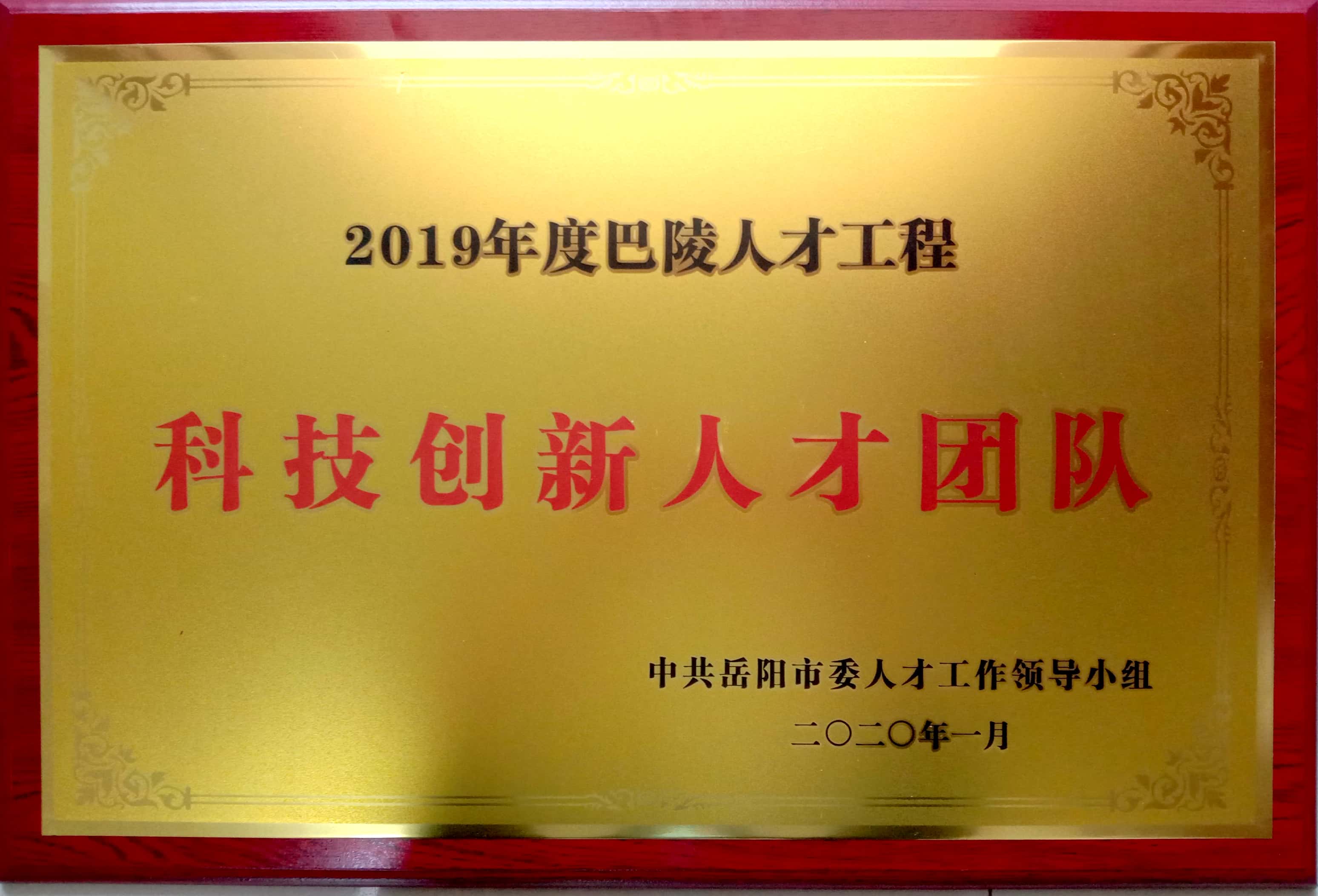 公司榮獲2019年度巴陵人才工程“科技創(chuàng)新人才團隊”獎項。