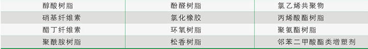 INT 8601樹脂與絕大多數(shù)用于涂料/油墨的樹脂有良好的相容性。包括下列樹脂: