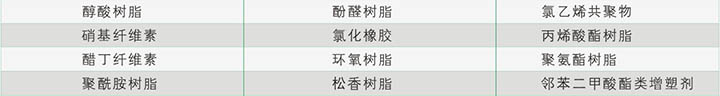 INT 8603酮醛樹(shù)脂與絕大多數(shù)用于涂料/油墨的樹(shù)脂有良好的相容性。包括下列樹(shù)脂: