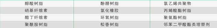 INT 8605樹脂與絕大多數(shù)用于涂料/油墨的樹脂有良好的相容性。包括下列樹脂: